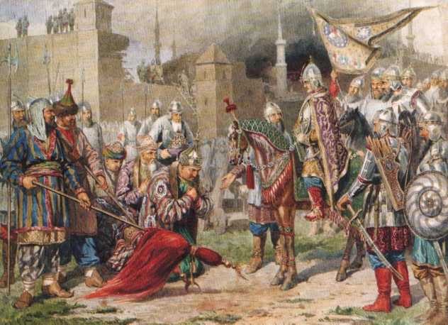 С криком «С нами Бог!» русское войско со всех сторон кинулось на город. Татары призывали на помощь Магомета и с яростью схватывались с русскими. Жестокая сеча кипела в городских воротах, в проломах и на стенах.