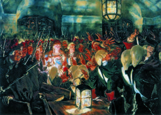 Царевна Елизавета Петровна и преображенцы кордегардии Зимнего дворца в ночь на 25 ноября 1741 года. Худ. Е. Лансере