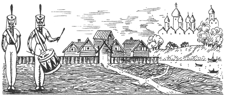 Сегодня Новгород всего лишь «magni nominus umbra» (тень великого имени). Ярославов двор переделан в конюшню, в которой теперь не ржут кони, а слышно лишь мычание коров. Большой колокол больше не сзывает народ на многолюдное и шумное собрание — вече; теперь под звон церковных колоколов медлительные новгородцы торгуют капустой и морковью. В древние времена, когда они противились и царской, и ханской власти, говорили они: «Кто против Бога и Великого Новгорода?» А ныне они не могут противостоять даже маленькому городку, лежащему на другом берегу Ильменя, — Старой Руссе, которая все больше узурпирует торговлю льном и солью и оставляет Новгороду возможность торговать лишь капустой и другими овощами…