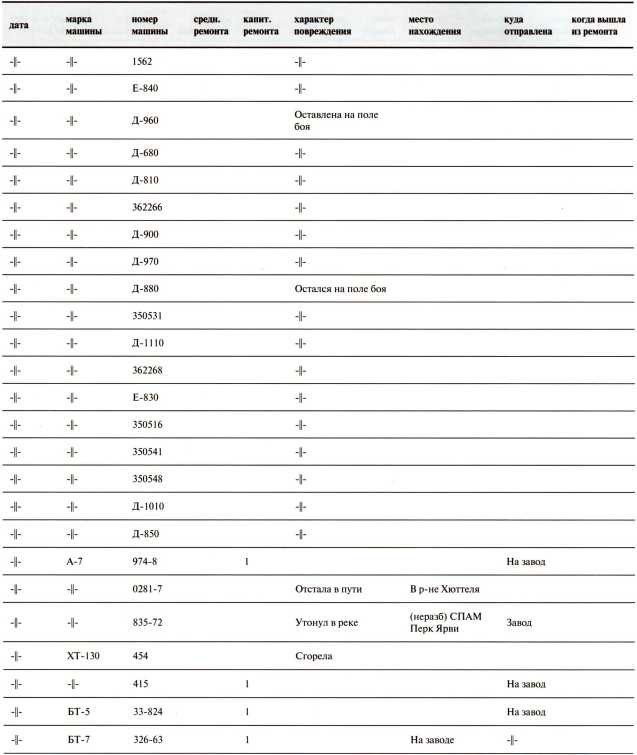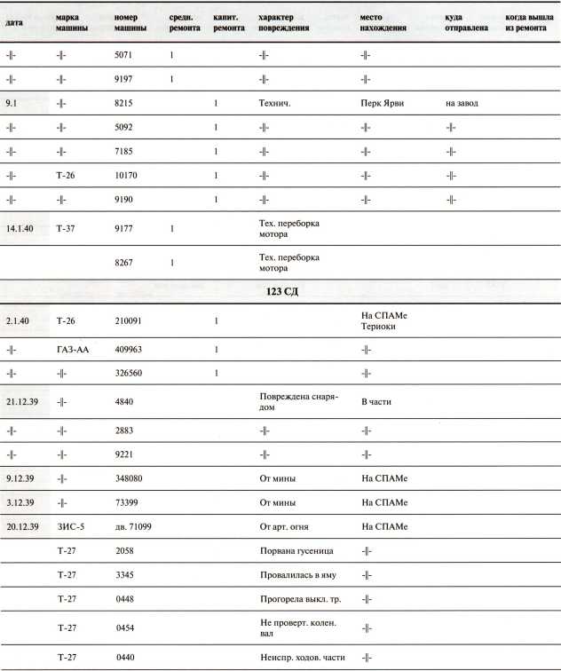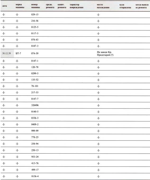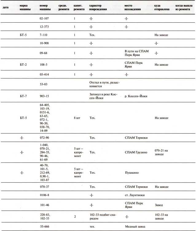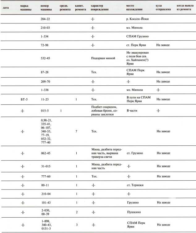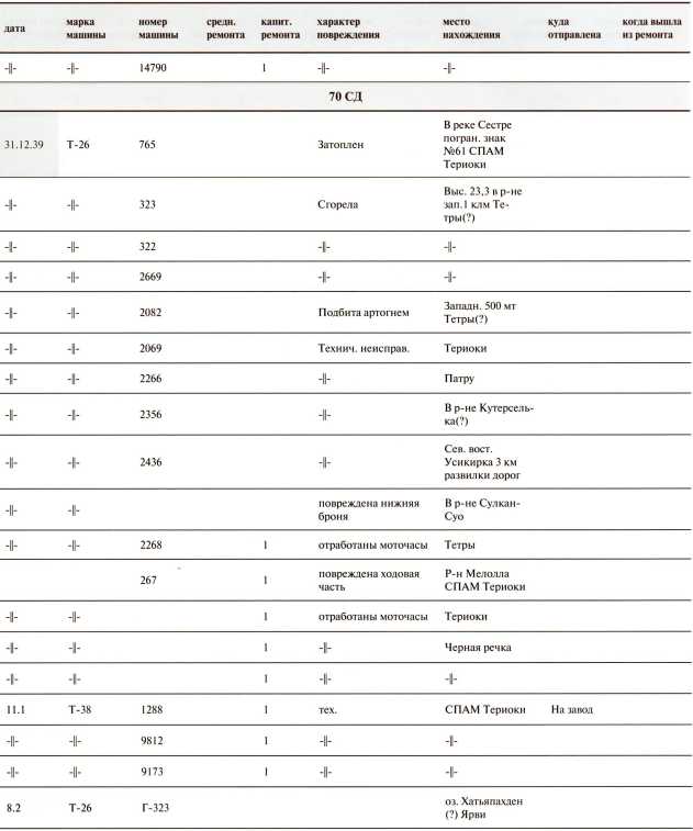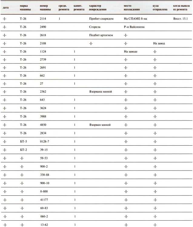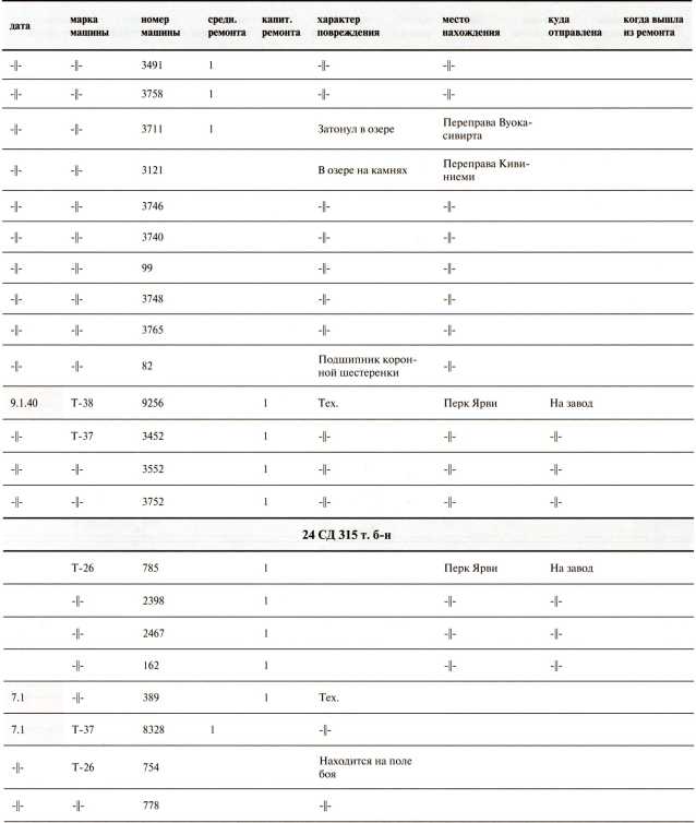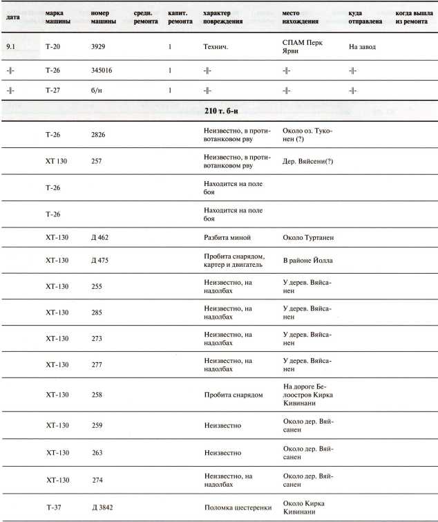 Ведомость потерь бронетанковых частей 7-й Армии на Карельском перешейке в декабре 1939 года
