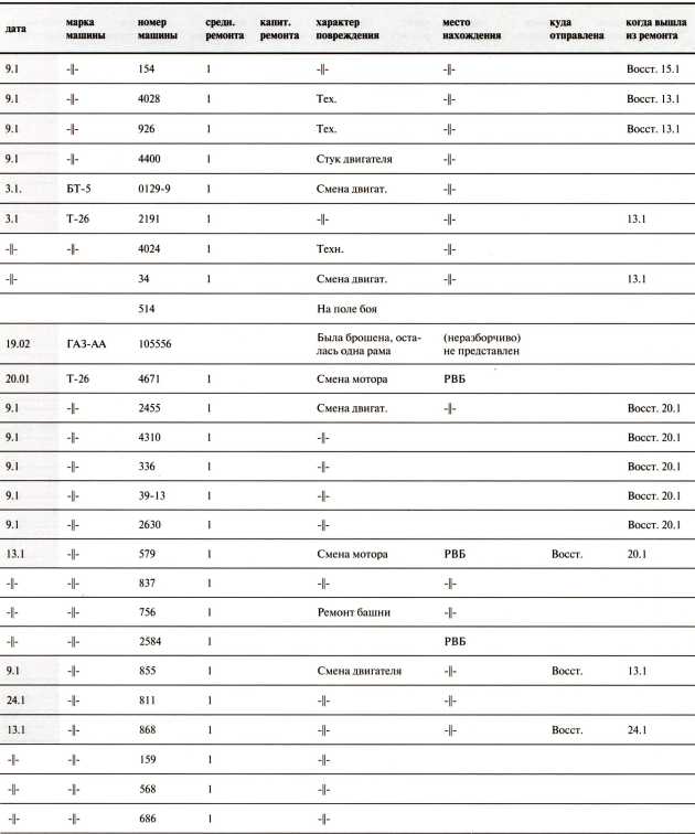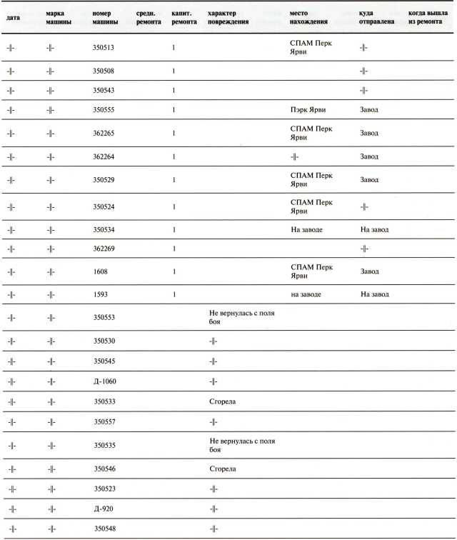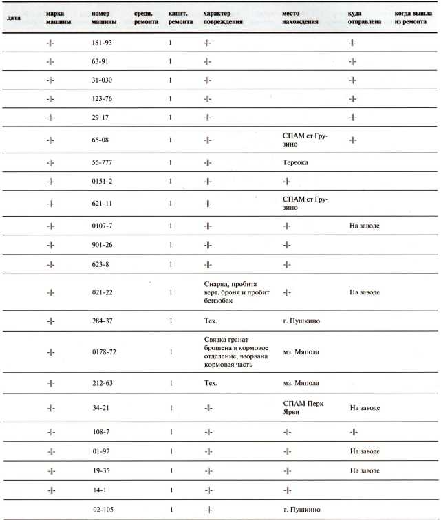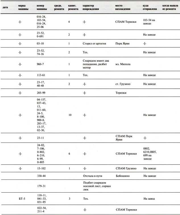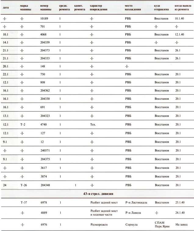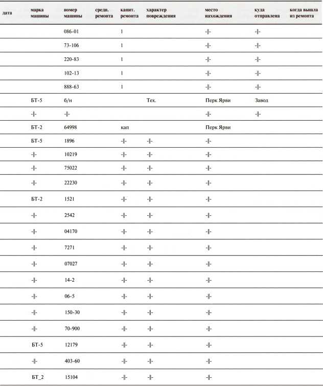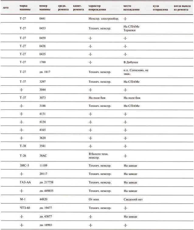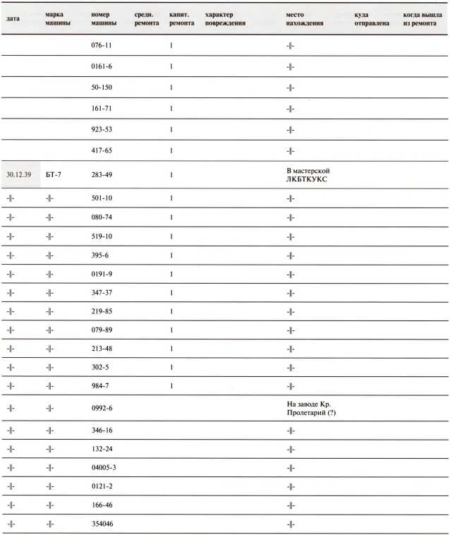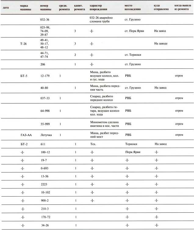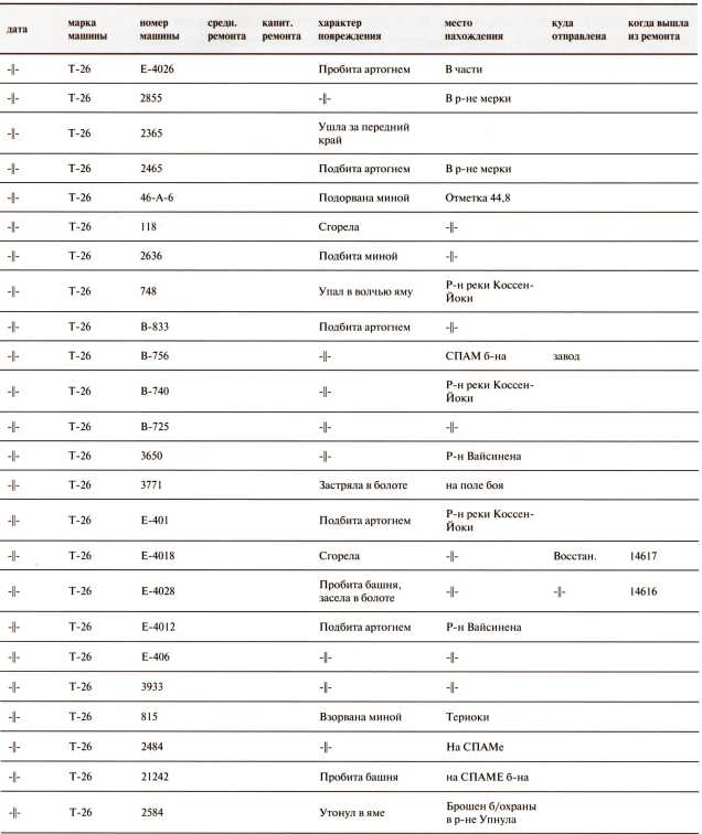Ведомость потерь бронетанковых частей 7-й Армии на Карельском перешейке в декабре 1939 года