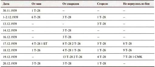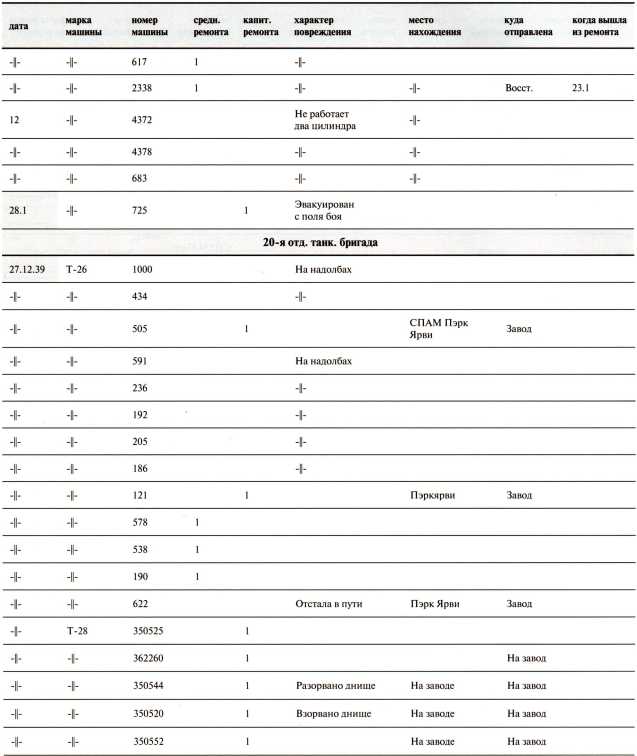Потери 20-й танковой бригады за декабрь 1939 года (без приданных частей)