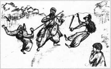 Когда оккупанты изымали оружие у населения, оно продолжало тренироваться голыми руками или с хозяйственными инструментами. Ведь такое было не только в Японии. Например, на Правобережной Украине после Колиивщины украинским крестьянам было запрещено иметь больше одного топора и одного ножа на десять домов: «После гайдаматчины, когда уже ляхи начали управлять Украиной, то на десять хат один нож и один топор: боялись, чтобы опять народ не взбунтовался. Вот войдет солдат в дом: «А ты, мужик, схизматик! У тебя два ножа, galgan, гайдамака!» заберет и пропало» (173, І, 139). Вот так допек поляков гайдамацкий нож-колун. А народ тайно изучал способы борьбы без оружия. Именно по этому танец гопак и аркан до ХХ в. сохранился в украинских деревнях, причем во многих разновидностях. Если уже сравнивать с японцами или китайским кунфу, где, например, существует стиль «пьяный монах», то есть свидетельство, что у нас существовал подобный танец, как «пьяный казак», который имитирует бой с врагом в состоянии опьянения. Исполнялся он с саблей. Причем мастера этого танца с Украины еще в XIX в. ездили на Кубань и обучали ему черноморских казаков (242, 3).