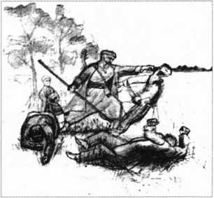 Нападение гайдамаков. Рисунок Г. Ковпаненко.