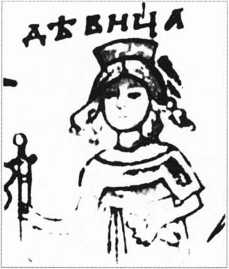 Дева с мечом. Рисунок из "Изборника Святослава", 1073 г.