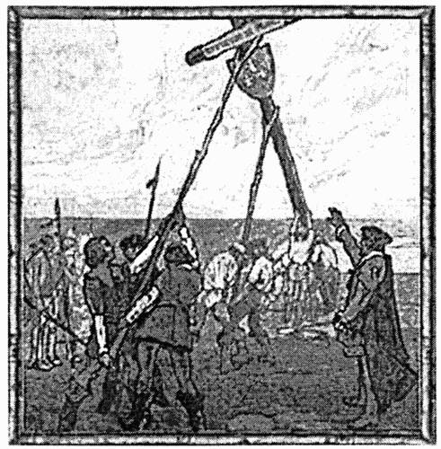Рис. 3. Жак Картье устанавливает крест с французским гербом, 1534 г.