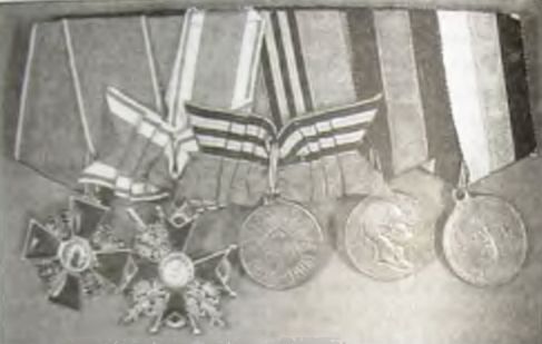 Колодка наград Дроздовского. Среди них два ордена — Анны и Станислава с мечами