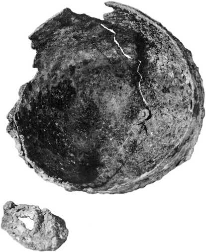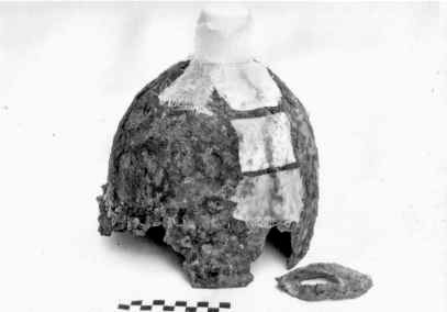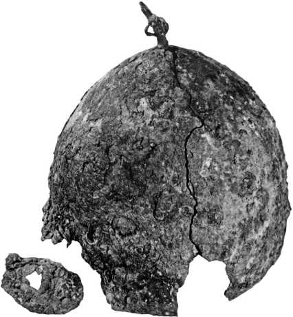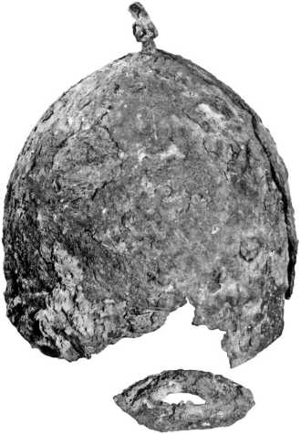 Рис. 1. Шлем из Городца до реставрации. Вид сбоку (фото из паспорта реставрации О.В. Степанова).