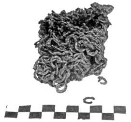Рис. 7. Фрагмент кольчуги, найденной вместе со шлемом, до реставрации (фото из паспорта реставрации О.В. Степанова).
