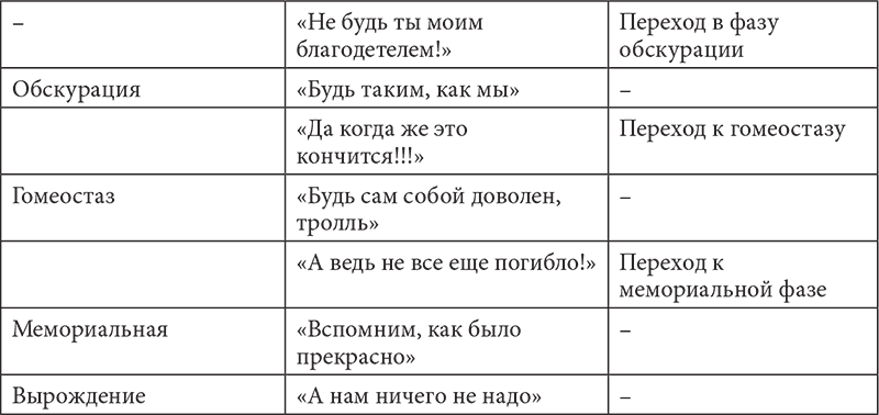 Описанные здесь люди мемориальной фазы еще имеют кое-какую пассионарность, мучающую их из-за сознания безнадежности. А их ближайшее окружение неспособно даже на отчаяние. Им уже ничего не надо кроме насыщения и тепла от очага. У них идеалы, то есть прогнозы, заменены рефлексами. Они не могут и, хуже того, не хотят бороться за жизнь, вследствие чего длительность этой фазы очень мала. Их подстерегает вымирание при любых изменениях окружающей среды, а так как она изменяется постоянно, то неуклонное однонаправленное развитие, будь оно возможно, привело бы вид Homo sapiens к депопуляции. Но поскольку этого не происходит, то следует заключить, что пассионарные толчки происходят чаще, чем финальные фазы этногенезов.