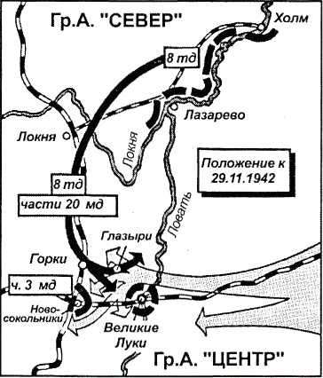 Ударные группы 291 и 331-й пехотных дивизий; части усиленного 76-го мотопехотного полка и 10-го танкового полка; 237-й дивизион штурмовых орудий продвинулись через Новосокольники и уже видели окруженный город. Но там войска и машины, понеся тяжелые потери, застряли в глубоком снегу. Однако Вёлер не сдался.