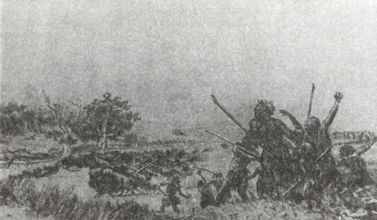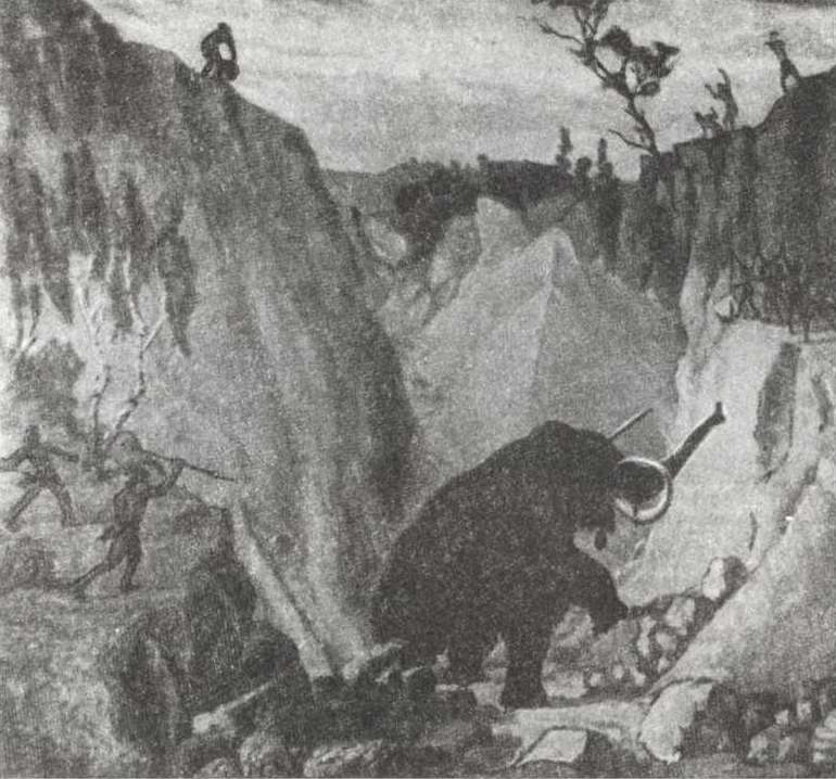 Рис. 17. Сцена полювання на мамонта мешканців північної зони.