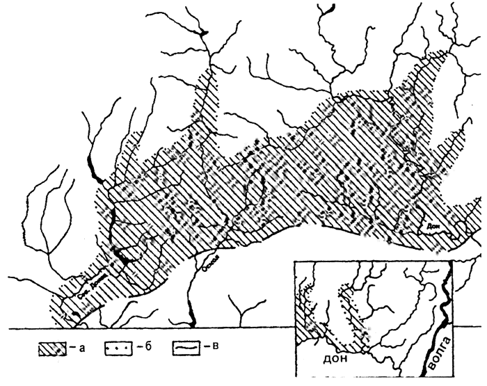 в — южная граница лесостепной зоны (по Галкиной Е. С.)