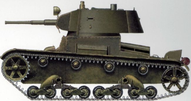 Советский легкий танк Т-26 обр. 1938 г. Масса — 10 т, экипаж — 3 человека, вооружение — 45-мм пушка и 7,62-мм пулемет, бронирование — 18 мм, скорость — 30 км/ч, двигатель — 95 л.с., запас хода — 200 км