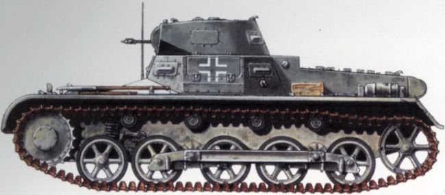 Немецкий легкий танк Pz.IB. Масса — 6 т, экипаж — 2 человека, вооружение — 2х7,92-мм пулемета, бронирование — 13 мм, скорость — 40 км/ч, двигатель — 100 л.с., запас хода — 145 км
