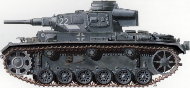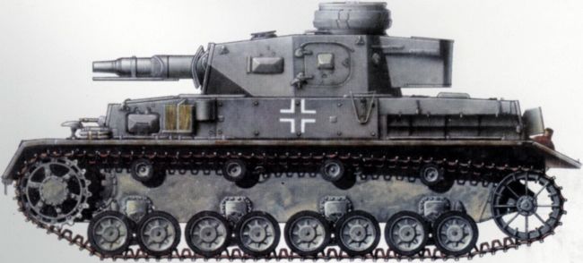 Немецкий средний танк Pz.IVD/E. Масса — 22 т, экипаж — 5 человек, вооружение — 75-мм пушка и 2х7,92-мм пулемета, бронирование — 30 мм, скорость — 42 км/ч, двигатель — 300 л.с., запас хода — 200 км