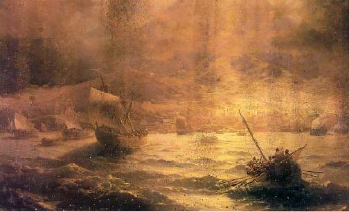19 апреля 1900 года Иван Константинович Айвазовский на 83-м году жизни скончался во время работы над картиной «Взрыв турецкого корабля», сохранив, как пишут современники, «до конца своих дней бодрость, свежесть художественного вдохновения».