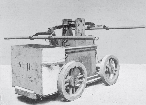 Модель римской пожарной машины. Качающийся рычаг приводит в действие силовой насос
