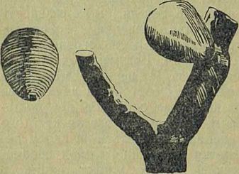 Здесь на рисунке вы видите две раковины. Слева раковина моллюска, жившего пятьсот миллионов лет назад; справа— нынешний моллюск, прицепившийся к водоросли или к веточке, упавшей в воду. Пятьсот миллионов лет разделяют этих двух моллюсков друг от друга, и все же они очень схожи.