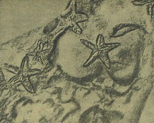 Морские звезды, очевидно, как раз собирались пообедать. Случайность прервала этот обед: с крутого берега, подмытого волнами, обрушился слой песка, засыпал и тех, которые собирались поесть, и тех, которые должны были быть съедены. За миллионы лет песок окаменел и сохранил навеки этот драматический момент.