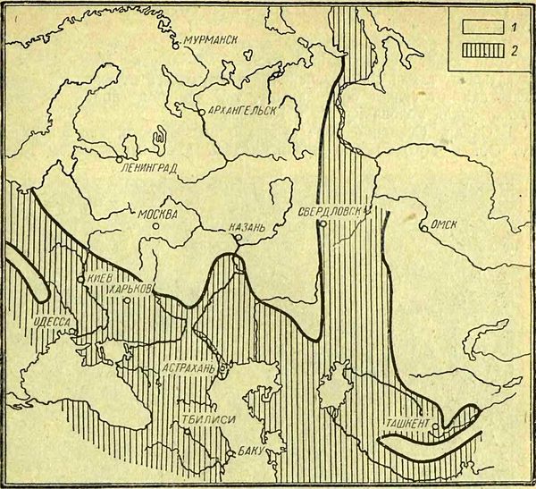 1 — суша, 2 — море. Бассейн понтической эпохи на юге европейской части СССР.