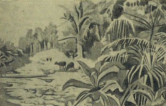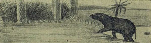 Затем появились настоящие хоботные: мастодонты с двумя парами бивней, вытянутых вперед, и гигант динотерий с загнутыми вниз бивнями, как у моржа; эти бивни служили ему, верно, для вырывания корней из речного ила.
