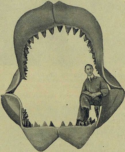 Страшнее всех была акула кархародон. Она была самая огромная из всех существ, живших когда-либо на Земле. Вы можете это представить, взглянув на кости, которые окаймляли ее пасть.