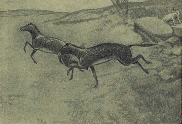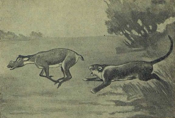 Эогиппус, без сомнения, бегал быстрее своего предка фенакодуса. Но хищники, жившие в одно время с ним, бегали тоже быстрее своих предков. Скорость и для них, как для эогиппуса, была вопросом жизни или смерти. Если эогиппуса заставлял бегать во всю прыть страх и он несся — по лесам галопом на четырех пальцах, то хищников подхлестывал голод. Состязание в беге не прекращалось.