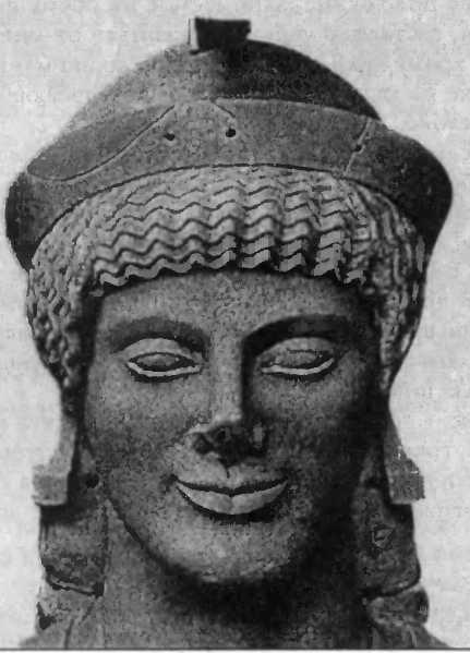 Голова Афины с западного фронтона храма Афайи в Эгине. Ок. 500 г. до н.э.