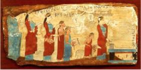 Можно было бы предположить, что древние греки иначе понимали цветность, чем мы, когда ориентируемся на цвета, выделяемые с помощью стеклянной призмы. Но яркость цветов, представленных на данном образце древней живописи, говорит об обратном: чистые цвета для греков были те же, что и для нас.