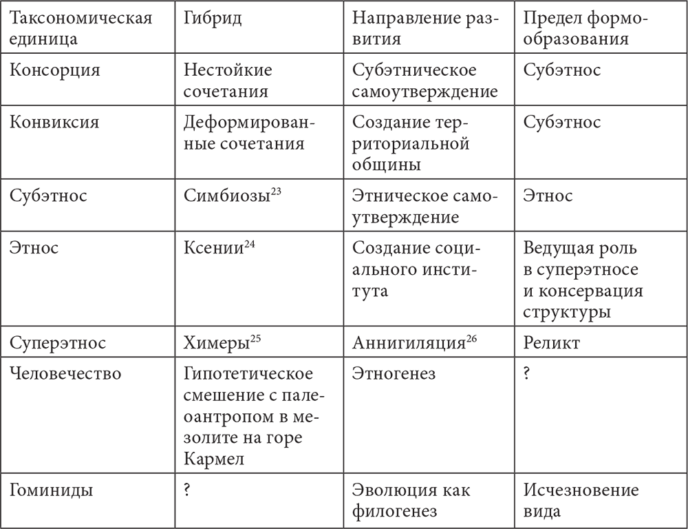 Возвращаясь к проблеме этнических контактов, необходимо прежде всего ставить вопрос об уровне, на котором контакт осуществляется (см. табл. 2). Сочетание двух и более консорций и конвиксий нестойко. Оно ведет или к распаду, или к образованию стойкой формы субэтноса. На субэтническом уровне смешение трактуется как «неравный брак» с особой «не нашего круга», причем ступень социальной лестницы часто не имеет значения. Так, еще в XIX в. казаки рассматривали брак с крестьянами и даже дворянами как «неравный», хотя последние были куда богаче и знатнее казаков. Мне удалось услышать сентенцию, ведущую начало, видимо, со Смутного времени: «В Писании сказано: не водитесь жиды с самарянами, а казаки с дворянами». Конечно, этого ни в каком «писании» нет, но как на это похоже отношение курдов к персам и армянам! Нищий пастух-курд не решается представить родным жену-персиянку, если не будет известно, что у нее пышная генеалогия. Так же сохраняли себя албанцы в Османской империи, баски – в Испании, шотландцы-гайлендеры – в Великобритании, патаны – в Гиндукуше. Они образовали с другими субэтносами стойкие этнические целостности на основе симбиоза, укрепленного эндогамией. В центральной части евразийского континента формы симбиоза этносов проявлялись очень ярко еще в глубокой древности.