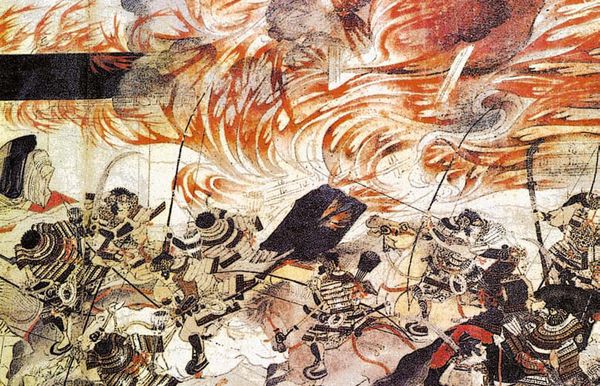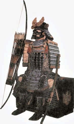 Самурай в защитном доспехе («о-ёрой») и большим луком («дайкю»)