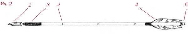 Стрелы луков средневековой Японии существенно отличались от европейских своим разнообразием. Стрела («я») (ил. 2) состояла из: