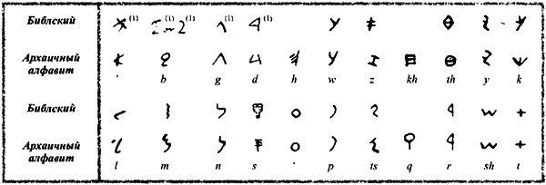 Рис. 129. Графическое сходство библских и финикийских таков: (1) «линейный» вариант библских знаков.