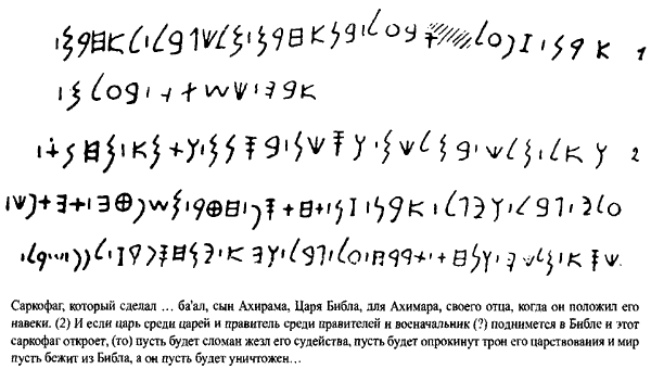 Рис. 130. Надпись Ахирама из Библа (до 1000 г. до н. э.).