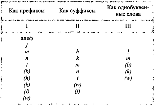 Затем Бауэр обратился к в высшей степени простому и хорошо апробированному средству — к тщательному изучению текстов с точки зрения частоты употребления отдельных знаков. И тут он столкнулся с фактом, что во всех грамматических функциях, соответствующих трем показанным на таблице разрядам (I, II и III), часто встречаются два определенных клинописных знака. Теперь он уже ищет знаки, употреблявшиеся во всех трех функциях, и находит три таких знака, это k, m и w (их легко можно установить, бросив взгляд на нашу схему). При этом Бауэр сразу же отбрасывает k ввиду его довольно редкого применения в указанных грамматических функциях; у него остаются m и w.