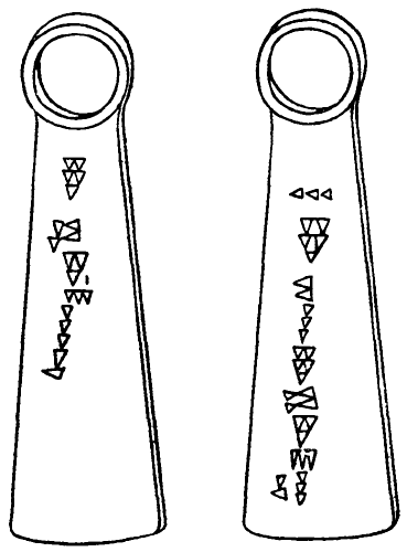 Рис. 134. Топоры с выгравированной угаритской надписью.