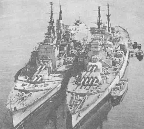 Английские линкоры «Вэнгард» и «Кинг Джордж V» на приколе в ожидании продажи на слом
