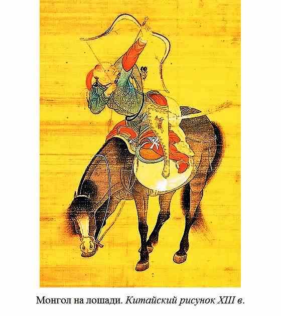 бые группы мышц. Монгольских мальчиков заставляли тренироваться с трехлетнего возраста. Зато из них вырастали поразительно меткие лучники, которые к тому же отлично умели стрелять на полном скаку. Вот как рассказывает русская летопись о монгольской коннице, ведущей обстрел осажденного города, то есть находящейся в весьма невыгодных для боя условиях: «…И летели стрелы их в город, словно дождь из бесчисленных туч, не давая взглянуть. И многие из стоявших на стене и на заборолах, уязвленные стрелами, падали, ведь одолевали татарские стрелы горожан, ибо были у них стрелки очень искусные. Одни из них стоя стреляли, а другие были обучены стрелять на бегу, иные с коня на полном скаку, и вправо, и влево, а также вперед и назад метко и без промаха стреляли».