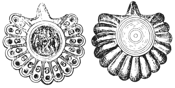 Рис. 54. Римский многорожковый глиняный светильник I в. по P. X., найденный в Киеве