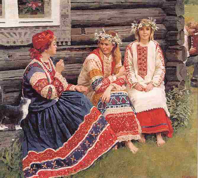 Женщины и девицы из простонародья тешились летом песнями, водили хороводы, плясали — подобно тому как это делается и до сих пор в деревнях. У людей знатных пляска считалась неприличным, не господским делом, но боярыни и боярышни по праздникам заставляли петь и плясать своих служанок. Церковь особенно сильно восставала именно против женских плясок, даже и смотреть на них считалось грехом.