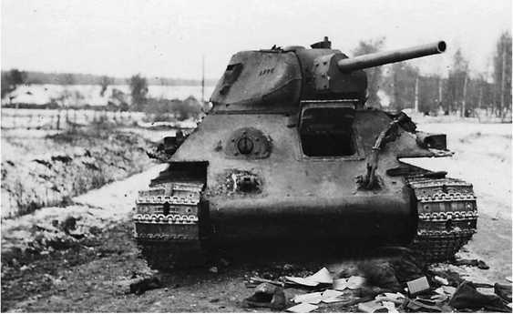 Танк Т-34 из 17-й танковой бригады, подбитый в районе Юхнова