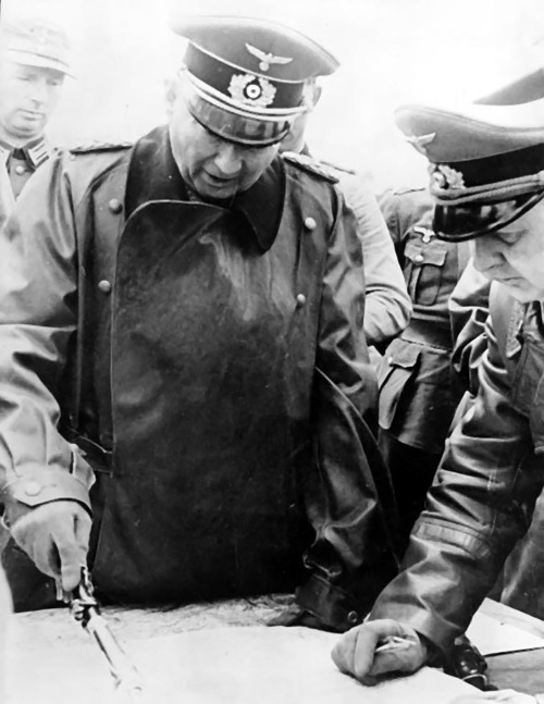 Командующий 4-й армией Гюнтер фон Клюге с командиром L VII тк Адольфом Кунценом на совещании в штабе