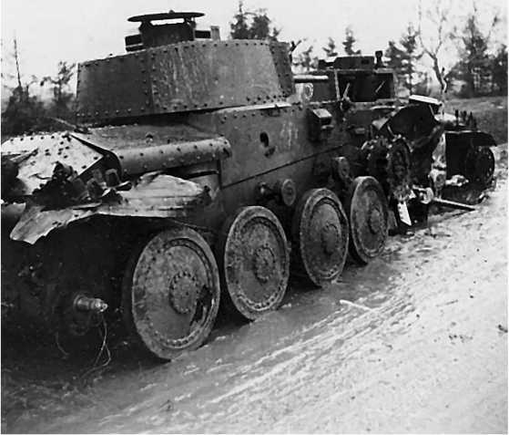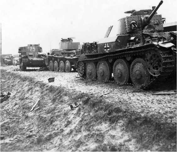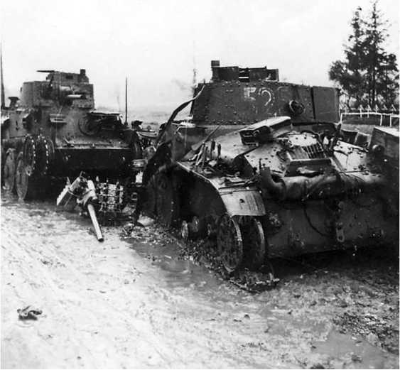 Подбитые немецкие танки 38(t) у Ильинского. Обратите внимание на две машины, стоящие лицом друг к другу. Очевидно, это неудавшаяся попытка маневрировать под огнем