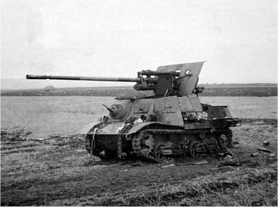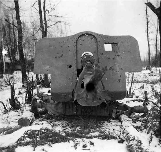 Брошенная САУ ЗИС-30. Кто-то из проезжавших мимо немцев вставил 57-мм унитарный патрон в ствол орудия