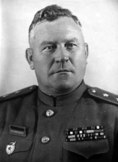 Командир танкового полка 9-й тбр И.Л. Вовченко (послевоенное фото в звании генерал-майора)