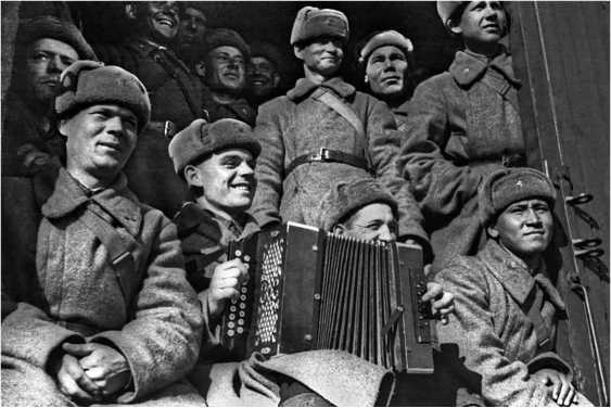 Группа бойцов с гармонистом с предыдущего фото крупным планом