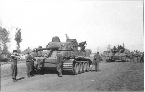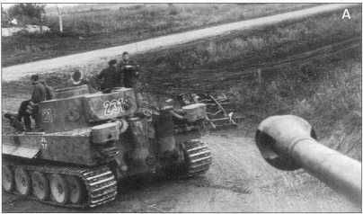 А,В. «Тигры» с номерами «114» и «115» (красного цвета) в районе Тернополя. На фото В унтер-офицер Гертнер (Gaertner) обучает венгерских танкистов воевать на тяжелых танках Pz.Kpfw.VI(H).
