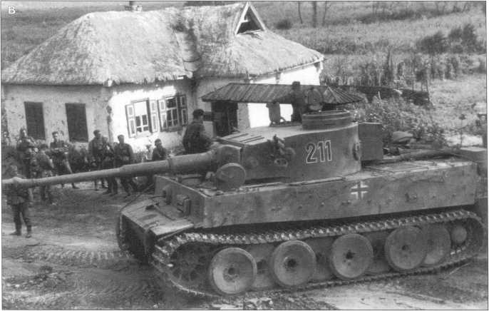 A-С. Pz.Kpfw.VI(H) 503-го батальона во время боев на Курской Дуге. Июль-август 1943 года.