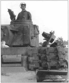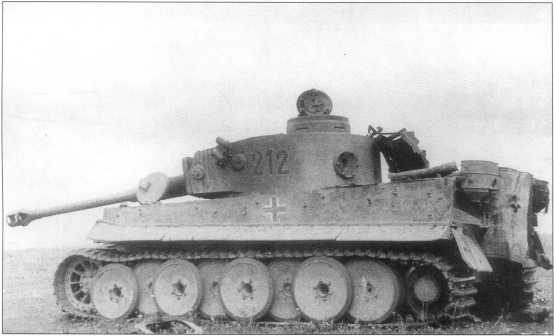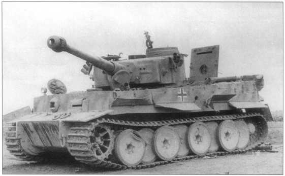 Pz.Kpfw.VI Ausf.E поздних серий (номер «213» черного цвета с белой окантовкой) в Нормандии. Танк имеет стандартный трехцветий камуфляж. Лето 1944 года.